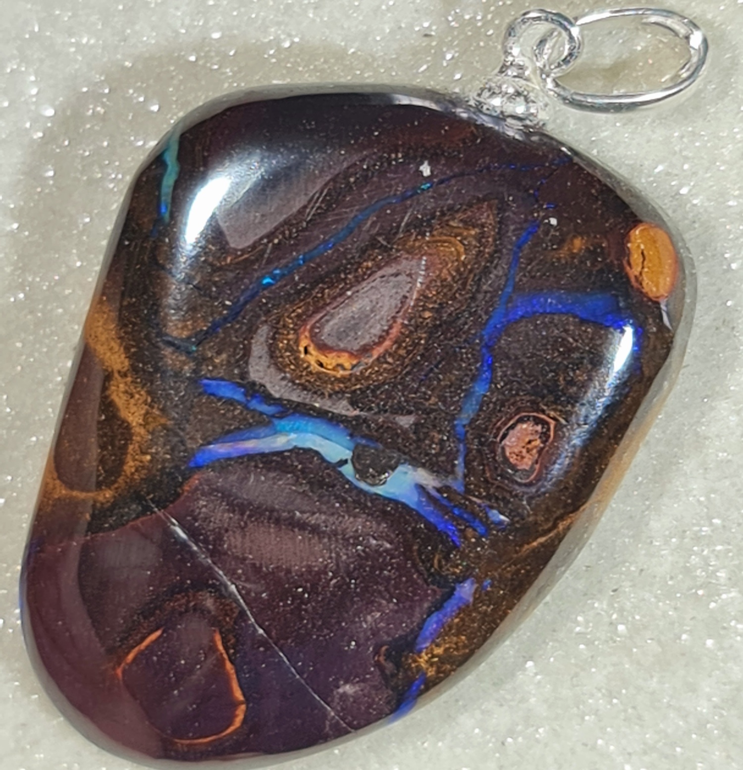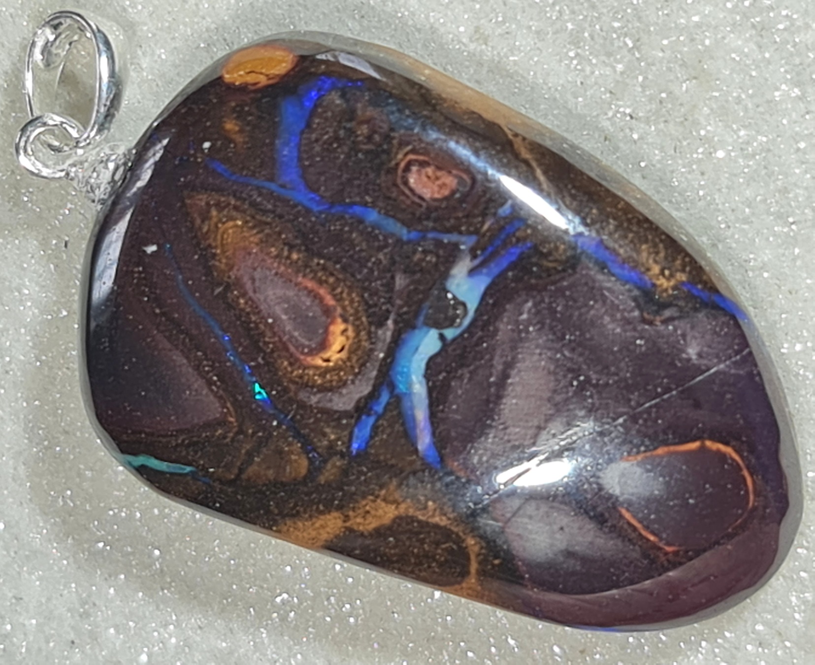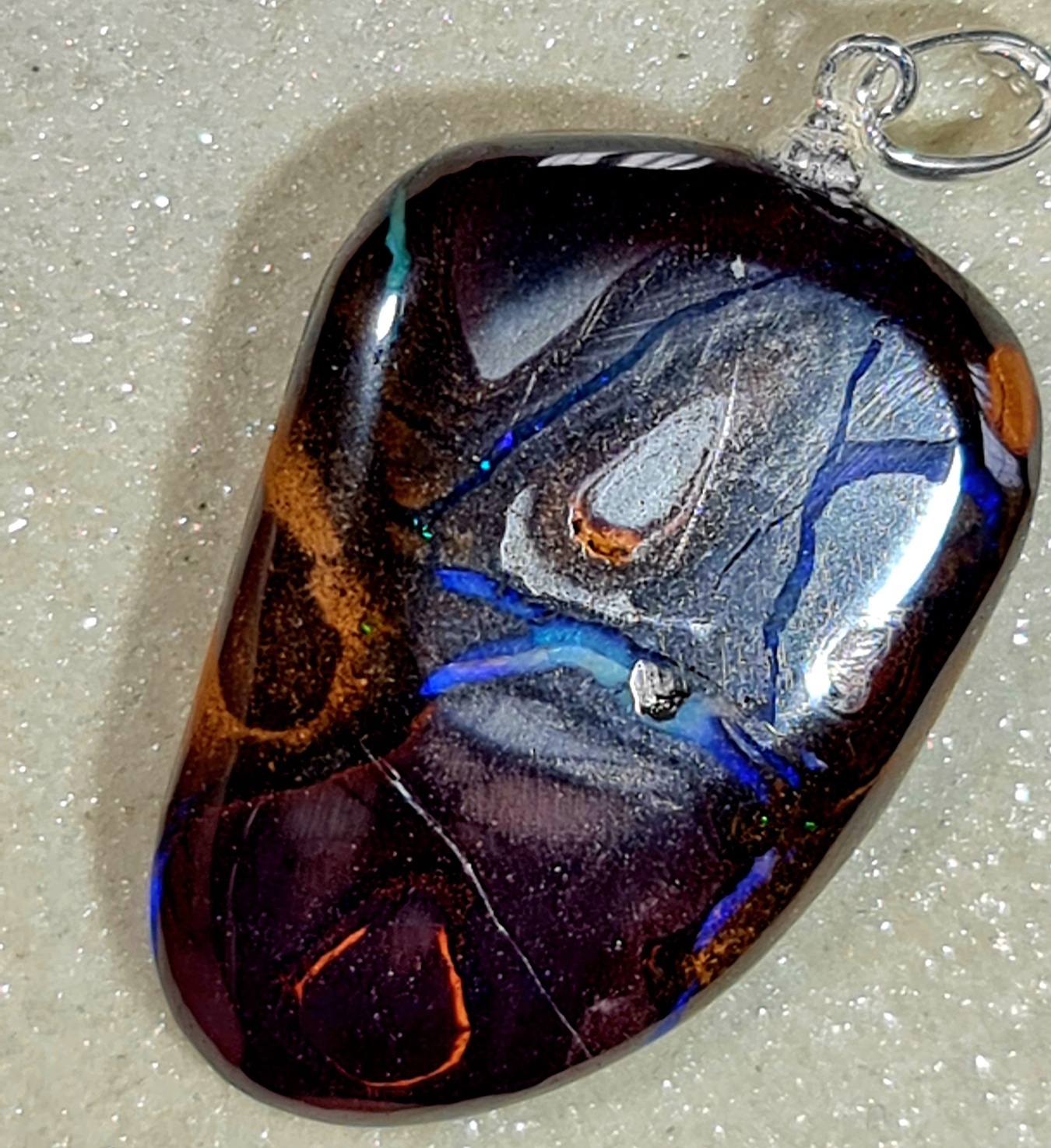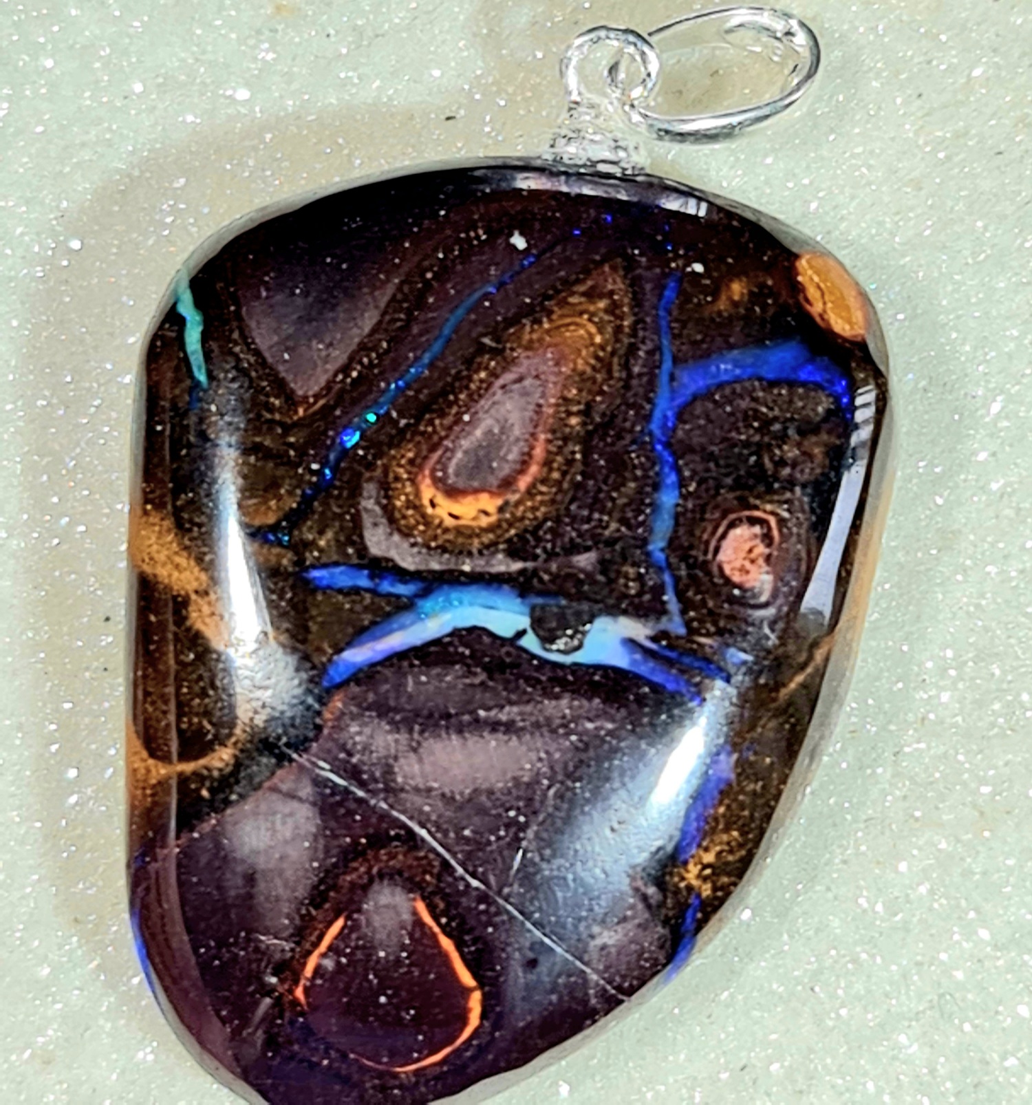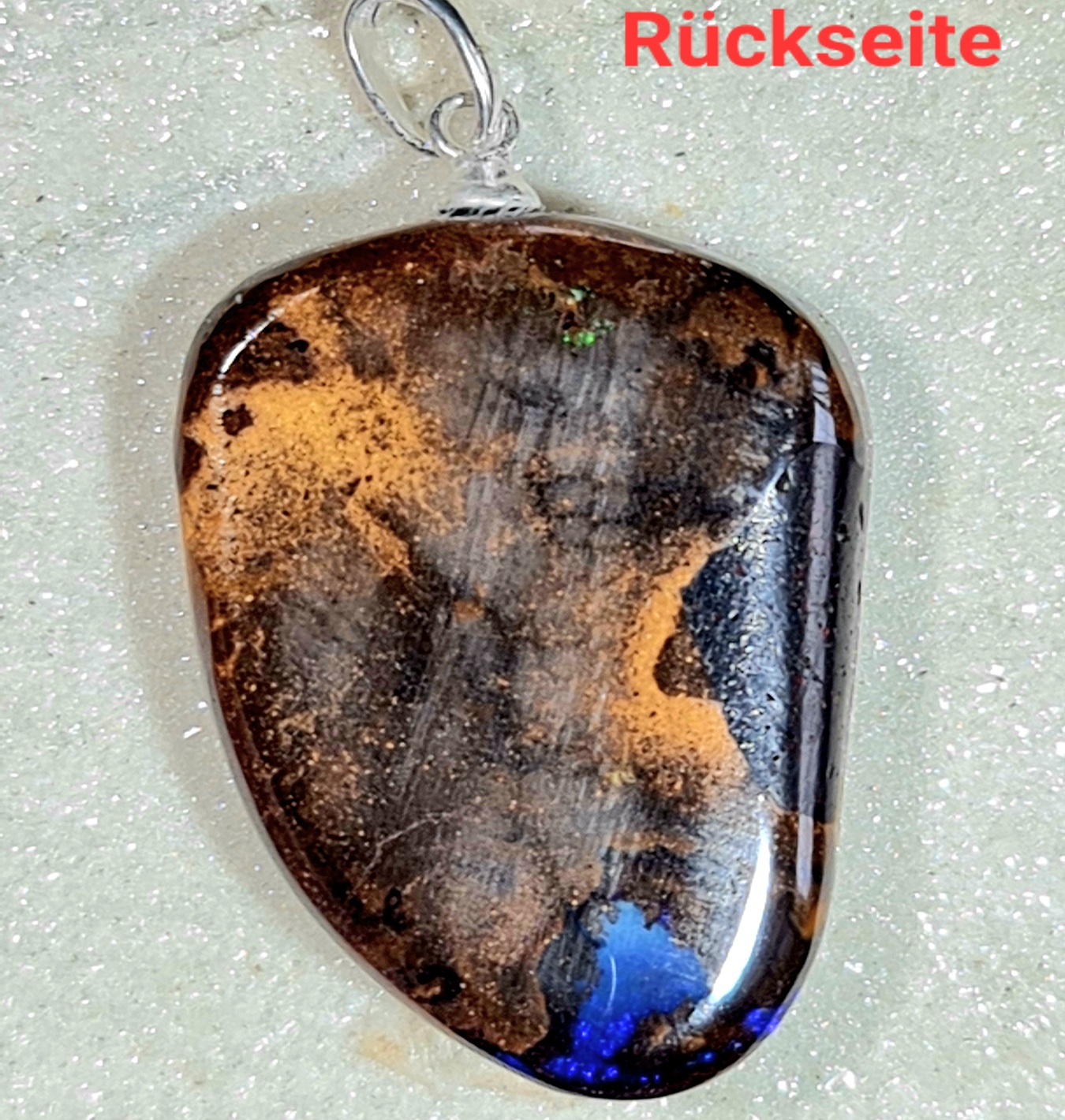 Opalanhänger mit schönen Opaladern ( hell – bis blau und grün ), kreativ geschliffen. Ein toller Edelstein und Anhänger!